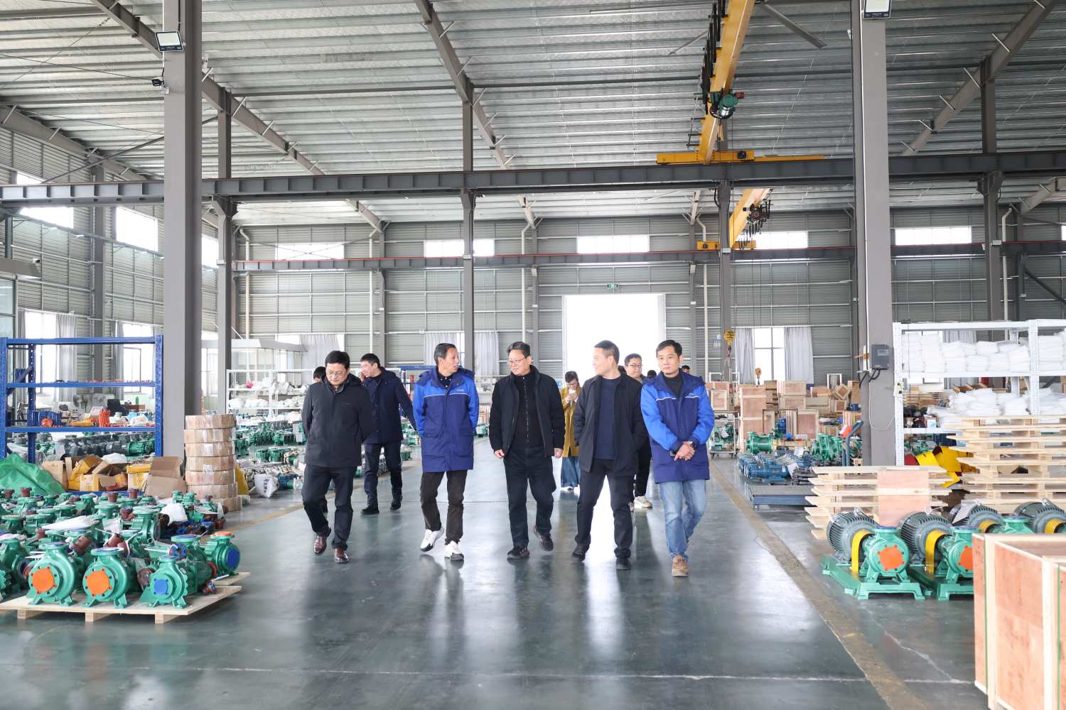 当日,李宏武主任一行深入我公司生产一线生产车间进行实地参观。周元军总经理详细讲解了公司核心产品的生产工艺、技术优势以及在防腐泵阀领域的创新成果。领导们不时驻足观看,详细了解产品的技术特点、市场应用以及一线职工的工作环境;详细询问了工艺流程、产品质量把控以及在行业内的领先优势。对j9.com泵阀多年来坚持深耕氟塑料泵阀领域,以“专精特新”引领行业发展的做法给予了充分肯定。